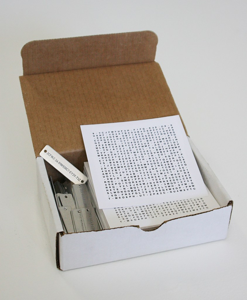 This is a code and a metal tag with the key (also the title of the show) printed on a metal tag. These were handed out during the exhibition. Wow, I can’t remember what it says anymore. Somebody please who is a code cracker out there has to work it out and tell me!!