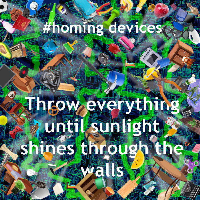 This is a series of exercises that offer new relationships to social and political concepts of home that are expressed in the body, actions, physical materials, and the interweave of the internet. These are based on the phenomena and externalization of fantastical and phasmographic spaces of the mind. This is a new set of works in the form of directions inspired by sound and event scores of Fluxus, resurrected into contemporary hypodermic hypermodern medicalized – libidinal and political economies. You can find other #homing devices on Instagram.
