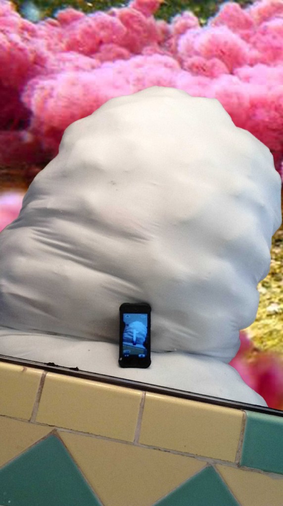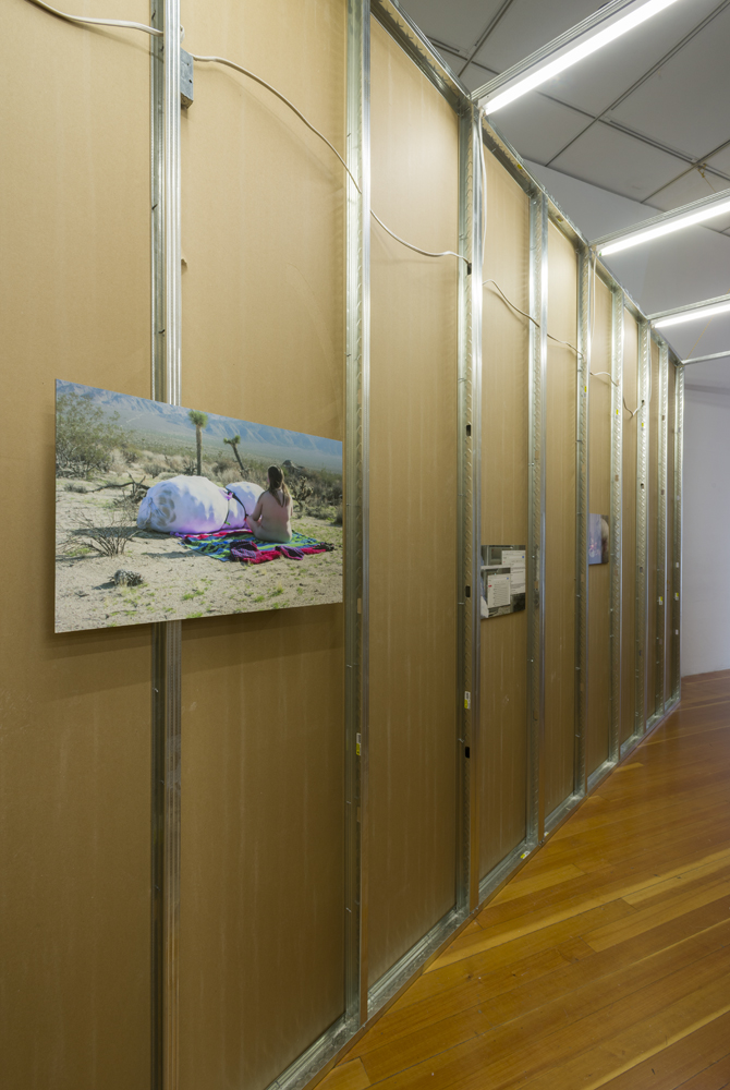 Lump Projects engages with acts of moving through locations of virtual and physical space, akin to acts of walking where the body gathers and is generated in a field of material, social relations, and constraints. There are several soft sculptural lumps, a 40-foot corridor that contains a series of photographs, and the light from several video projections fading in and out on the yellow exterior of the corridor and the gallery walls that captures multiple contours of the lump.