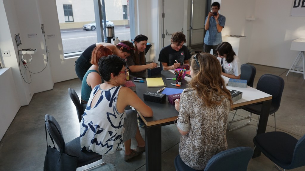 us in precarity; words against reason was supported by Deep Time University (DTU), a project by artist Michael Ano, created as an alternative learning platform to engage with the questions: “What should the University teach you? What do you want to learn? And, what do you need to know now to survive? DTU: Intersession was a series of interactive research and production seminars exploring: occupying space, coping with trauma, and sustainable practices. Deep Time University was organized in collaboration with The Museum of Contemporary Art San Diego and was developed in dialogue with UC San Diego students, campus resource centers, and faculty. This program was supported by MCASD’s Millennial Engagement initiative from an Irvine Foundation Exploring Engagement grant, UC San Diego Frontiers of Innovation Scholars Program; Institute of Arts and Humanities, Sixth College, and the UCSD Visual Arts Department.